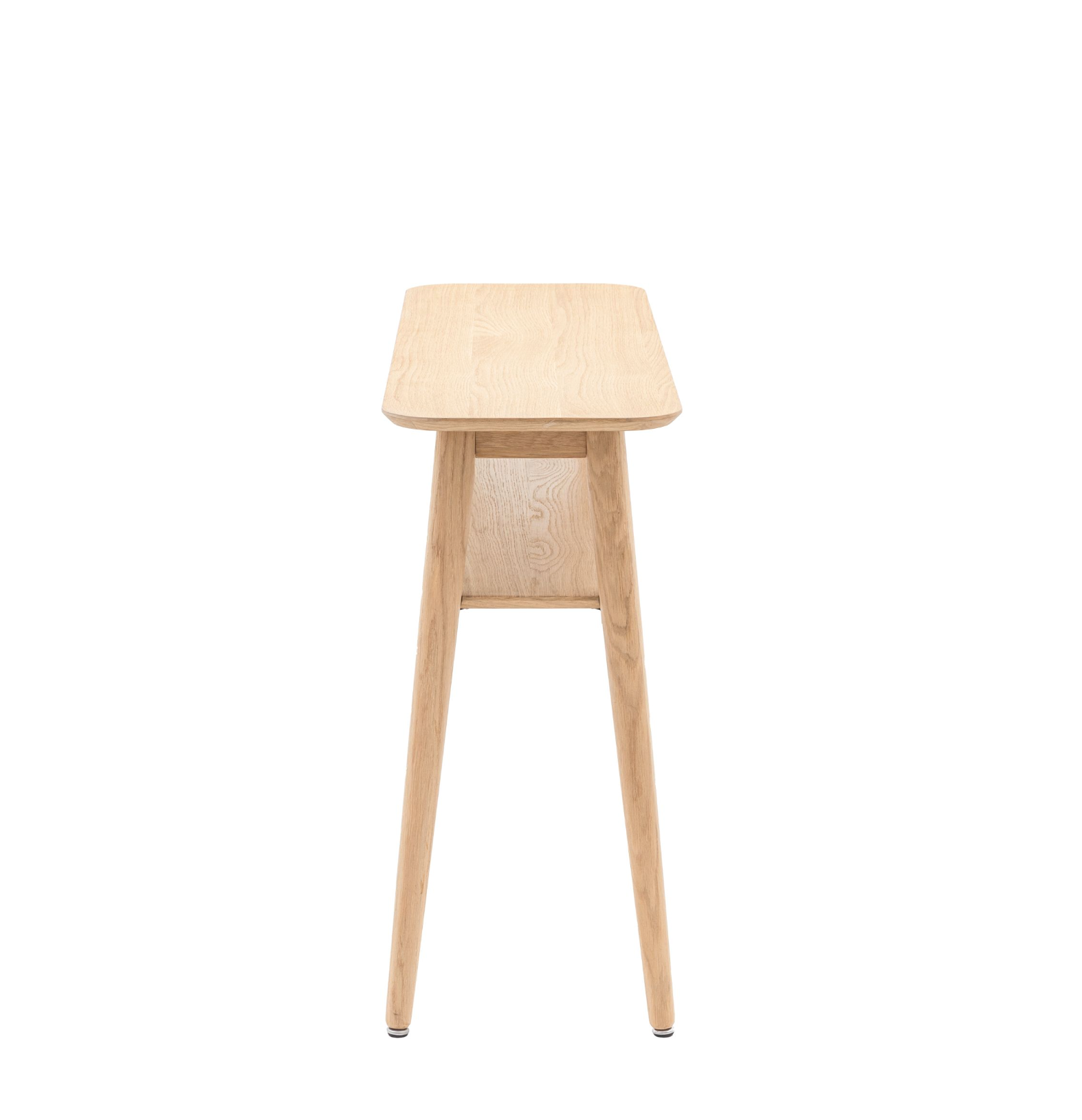 This narrow console table is crafted from oak which gives a durable and aesthetically pleasing focal point to any hallway. With a s small fixed shelf for baskets or books, this little console will give you the perfect space on a lonely wall to add a mirror or artwork above.