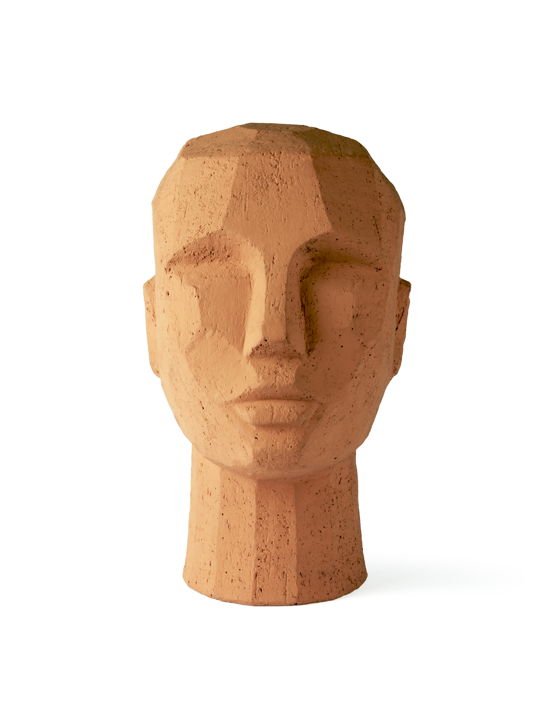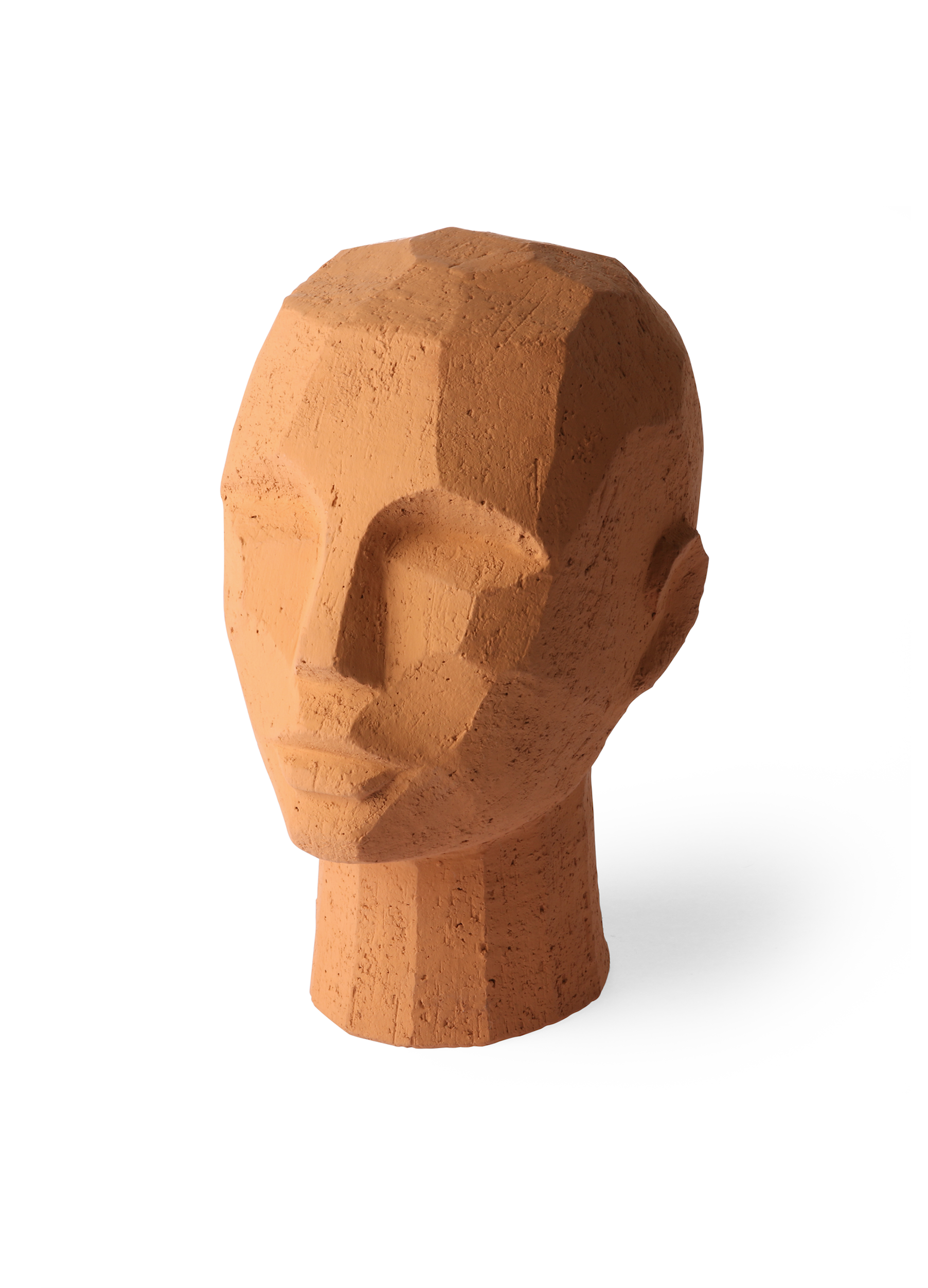 Abstract head sculpture, made of terracotta. Terracotta is unglazed earthenware from red clay.