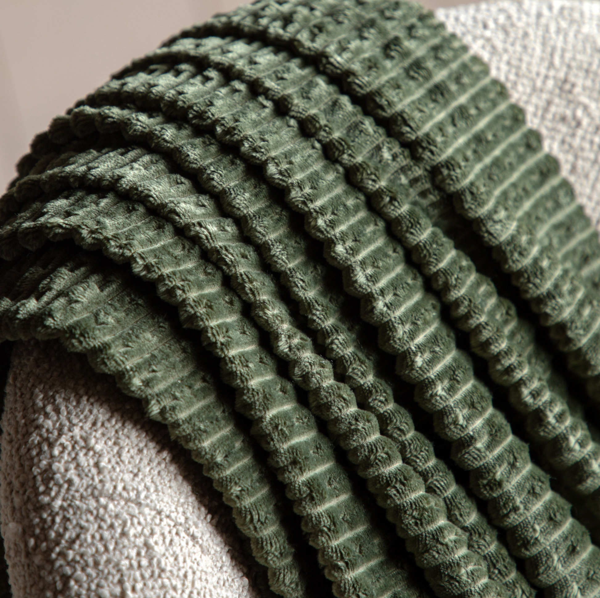 Soft to the touch, this olive green fleece throws embossed pattern adds texture, creating a warm an cosy throw.